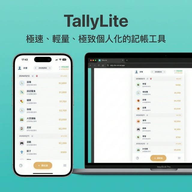 因為市面上沒有完美的工具,所以我動手寫了一個。 TallyLite 是我將 10 年記帳習慣數位化的成果,從解決自身痛點出發,具備原生 App 的流暢感與強大的資料彈性。本文記錄了 TallyLite 的核心價值、特色與開發初衷,並開放訪客模式體驗。